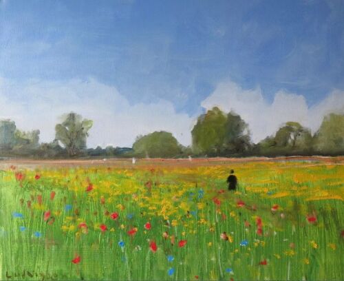 Stunning plein air Painted in a buttercup meadow near York. 60x50cm oil on canvas.. Malcolm is a plein-air painter - He paints outside, directly in front of the subject. This gives the work a vibrancy and life sadly lacking in much of studio painting.!