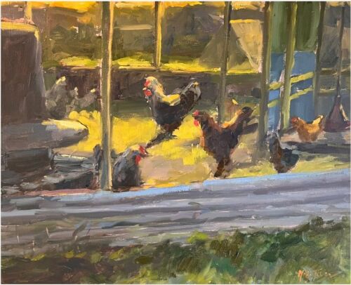 Helen's Tissington Hens - Painted on a perfect autumn morning in the Peak District village of Tissington