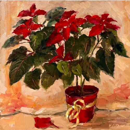 A rare opportunity to acquire an incredible original Helen Tarr M.A (Fine Art) painting "Still Life with Poinsettia"