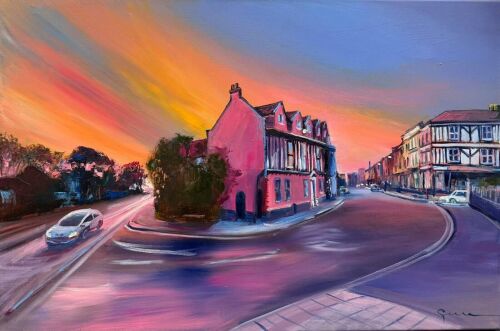 A rare opportunity to acquire an incredible original Gennadiy Ivanov painting "Pink on Pink - Norwich Upper St Giles Sunsets"