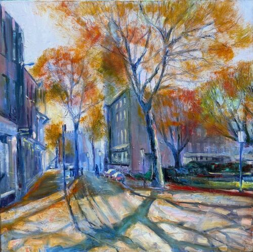 A rare opportunity to acquire an incredible original Gennadiy Ivanov painting "Norwich Autumn Sunrise St Giles Street -Norwich Streets Series"