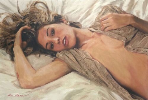 The painting explores the timeless language of the reclining figure, drawing upon the classical tradition while remaining deeply contemporary in its immediacy. Loose yet deliberate brushwork allows flesh tones to emerge through layers of warmth and reflected light, while the restrained palette keeps the mood contemplative rather than overtly dramatic. Rather than narrative, the work invites recognition: a fleeting inward moment, the unspoken desire suggested by the title itself — the heart reaching toward something just beyond articulation.